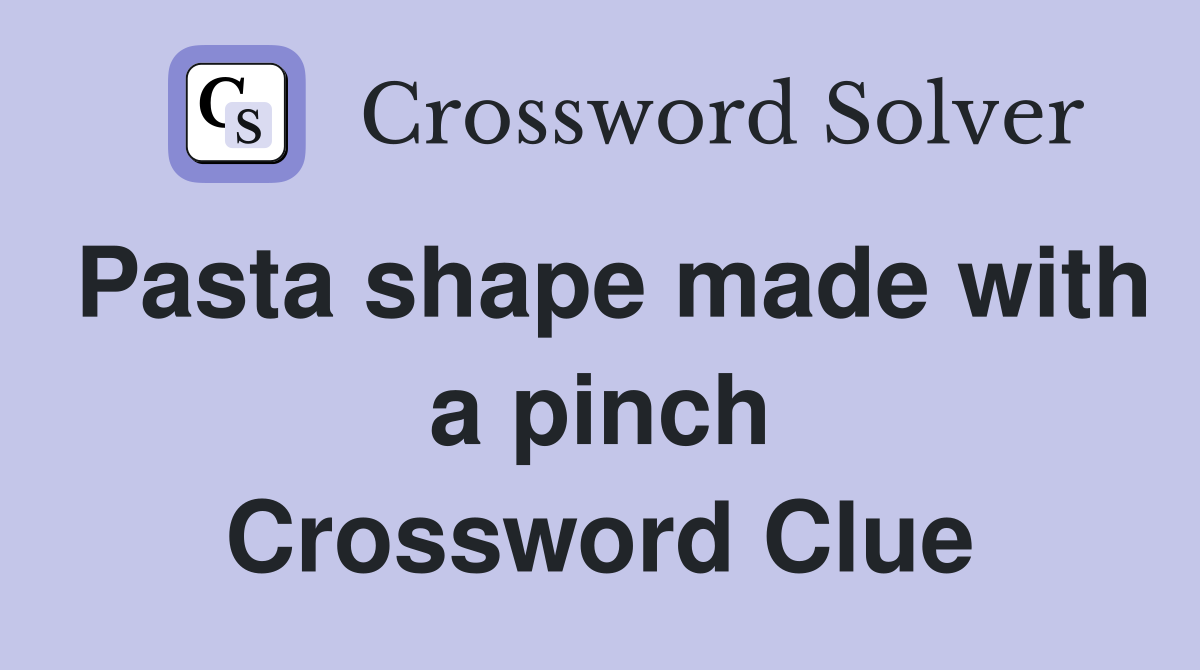 Pasta shape made with a pinch Crossword Clue Answers Crossword Solver