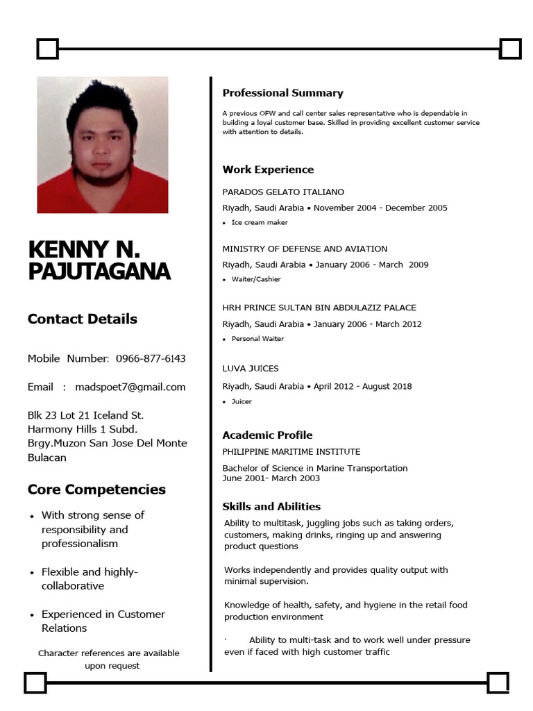 Resume Sample PDF Riyadh Saudi Arabia