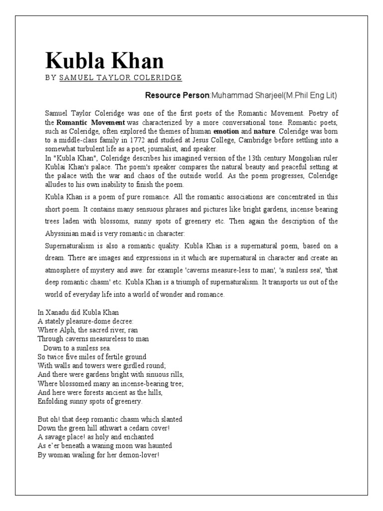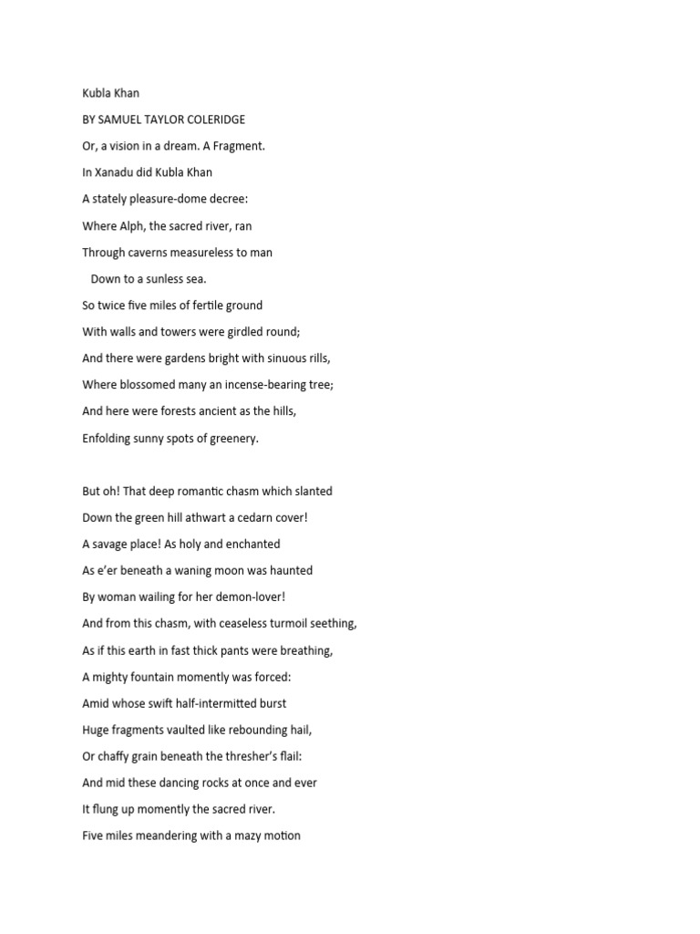 quot Kubla Khan quot by Samuel Taylor Coleridge ESP