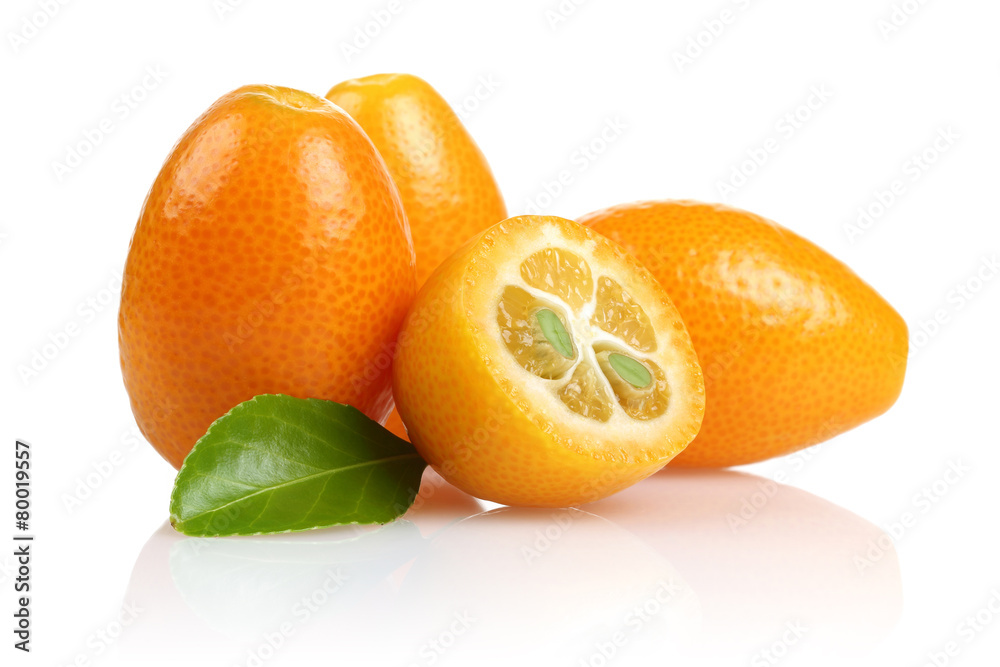 Kumquat Oder Kumquat Mit Blatt Isoliert Auf Weißem Hintergrund Hautnah