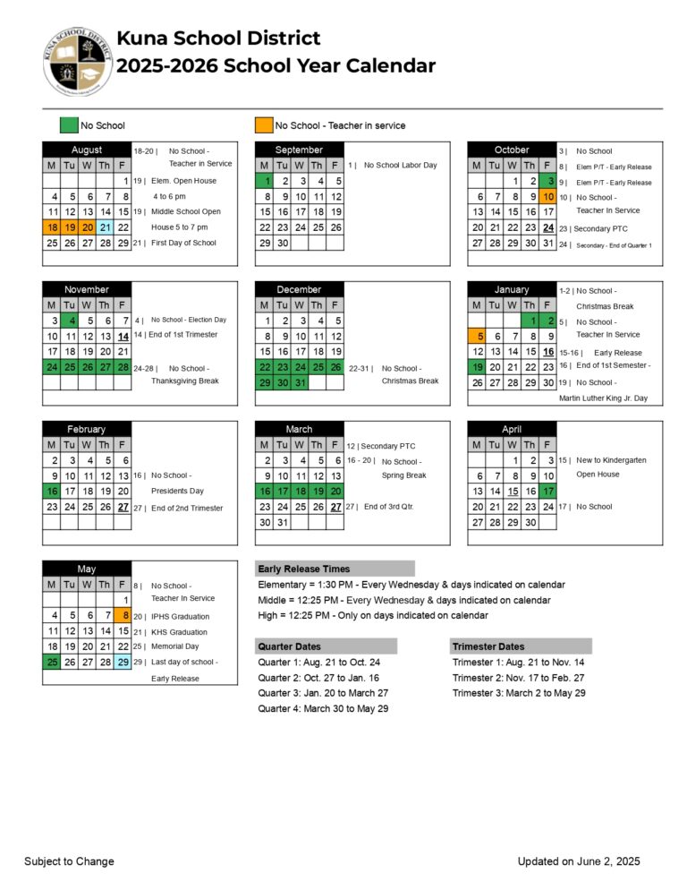 Kuna Schools Calendar