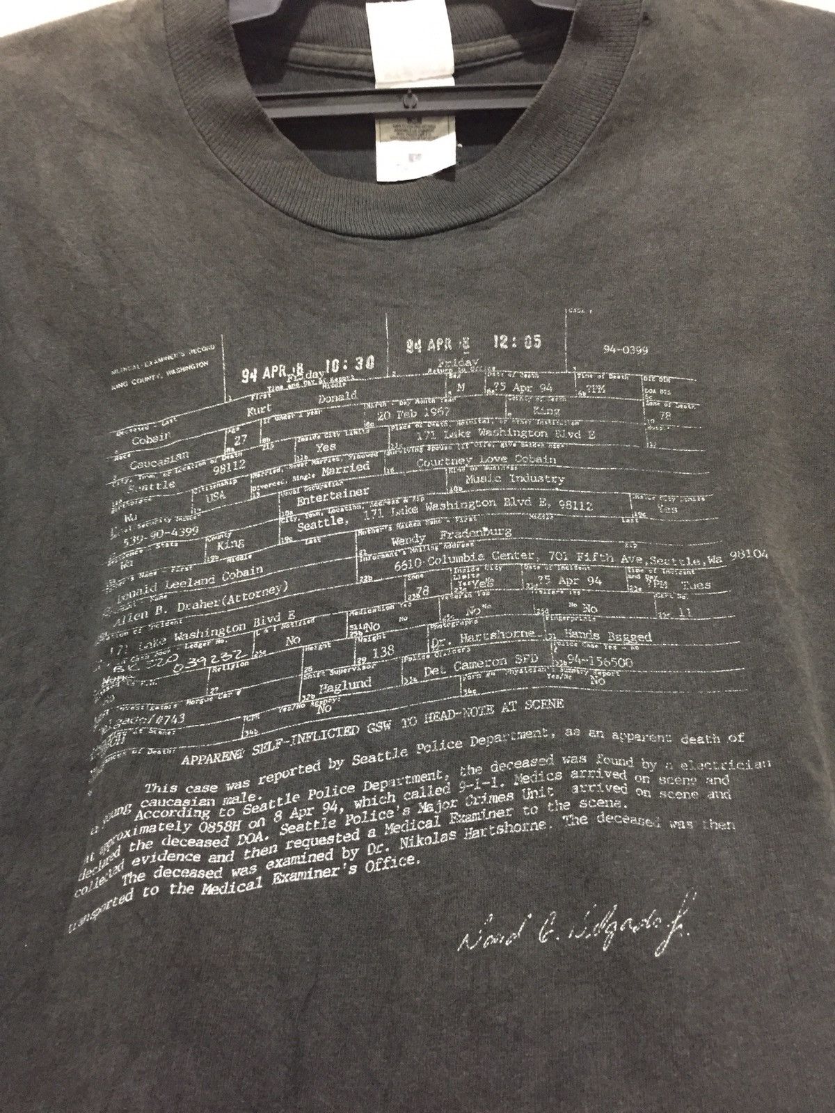 Rare Kurt Cobain Death Certificate T shirt Gem