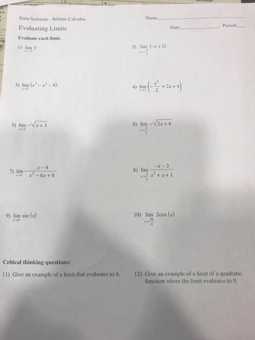Solved Kuta Software Infinite Calculus Evaluating Limits Chegg com