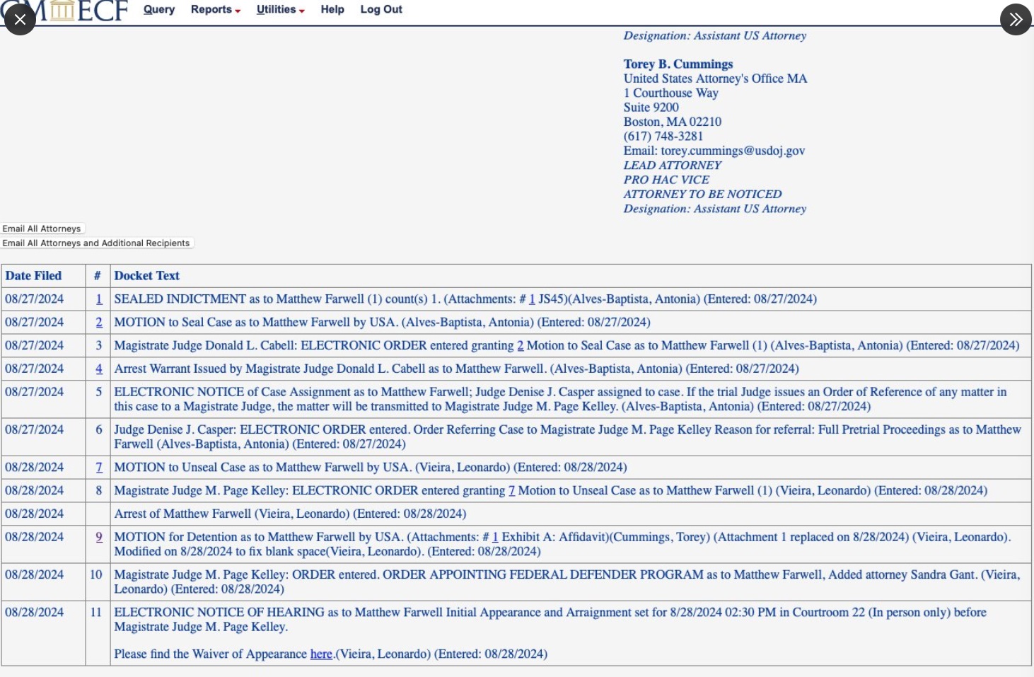 PHOTO Boston Federal Court Docket In United States v Matthew Farwell