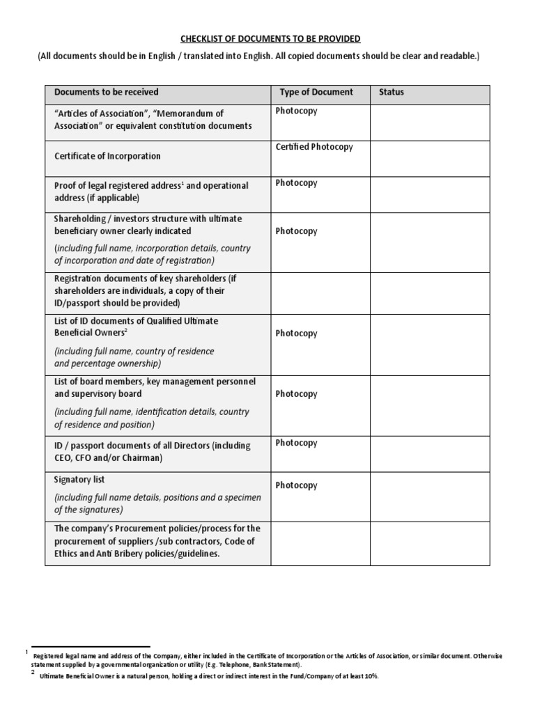 KYC Checklist of Documents and Info To Provide PDF Articles Of