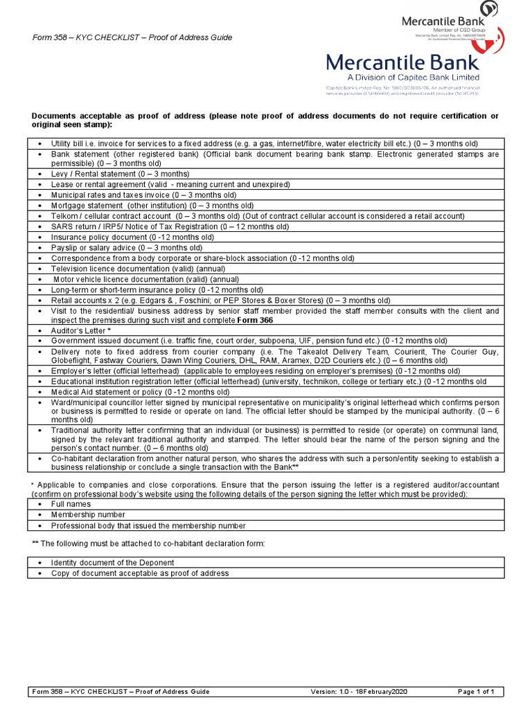 Form 358 KYC CHECKLIST Proof of Address Guide PDF Lease Private Law