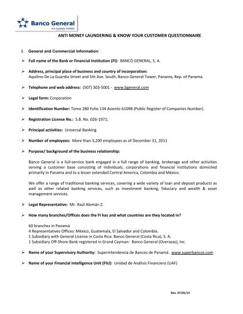 AML KYC Questionnaire For Financial Institutions PDF Money