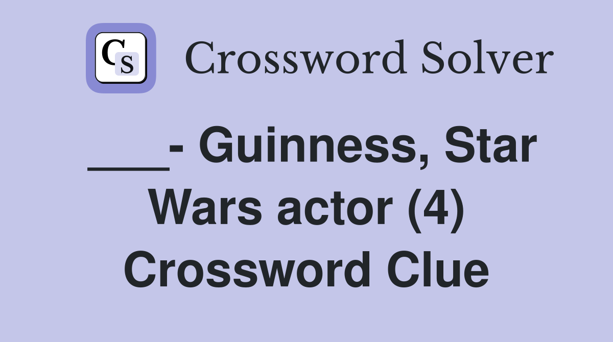 Guinness Star Wars actor (4) Crossword Clue Answers Crossword Solver