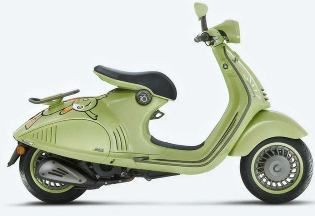 Vespa Pamer Motor Berwarna Hijau Lime Sebagai Peringatan Ulang Tahun