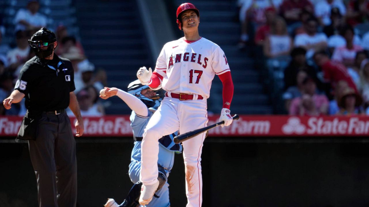 Los Angeles Angels pinch hitter Shohei Ohtani wears a jersey with his