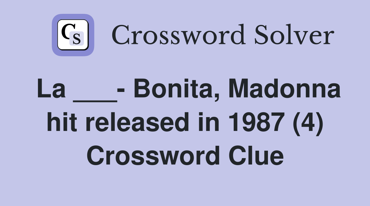 La Bonita Madonna hit released in 1987 (4) Crossword Clue