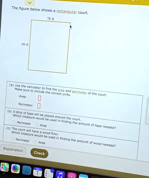 SOLVED: The figure below shows rectangular court 78 ft Use the