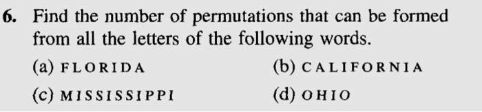 Solved 6 Find the number of permutations that can be formed Chegg com