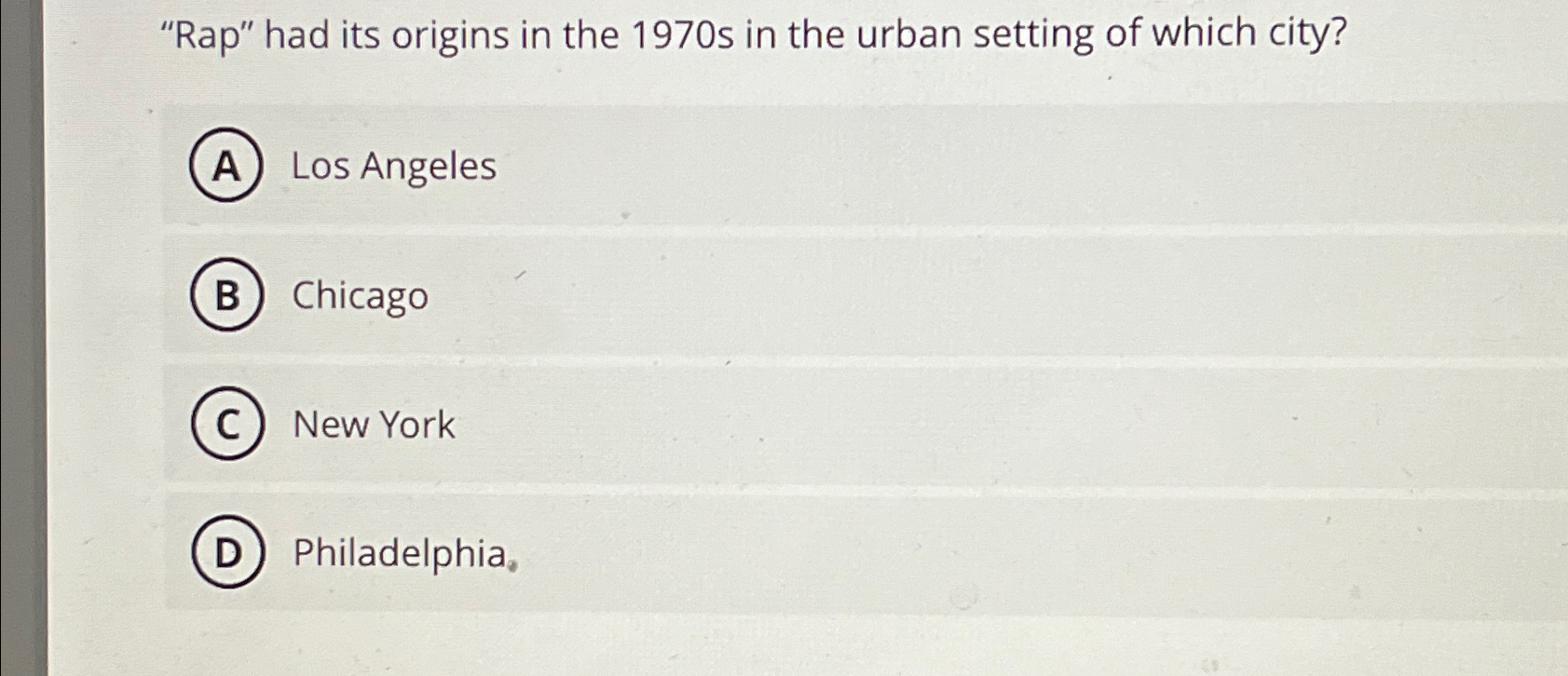 Solved quot Rap quot had its origins in the 1970 s in the urban Chegg com