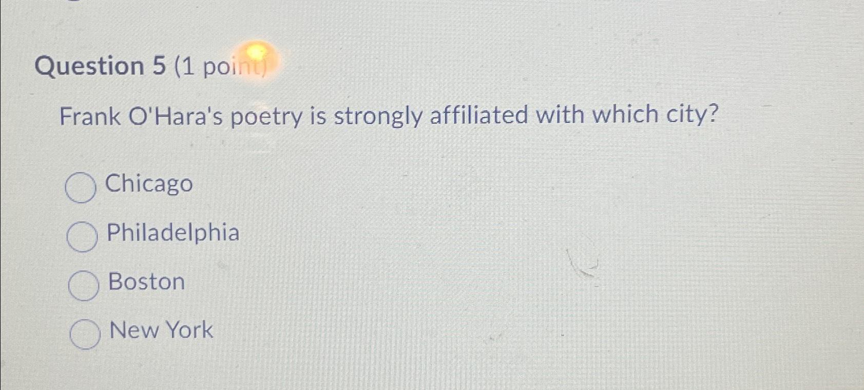 Solved Question 5 (1 point)Frank O #39 Hara #39 s poetry is Chegg com