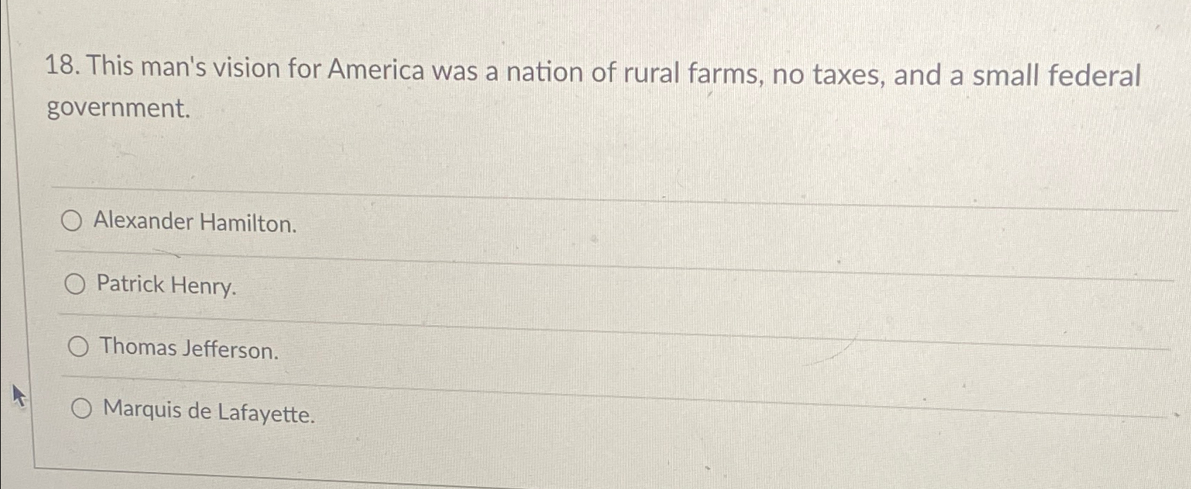 Solved This man #39 s vision for America was a nation of rural Chegg com