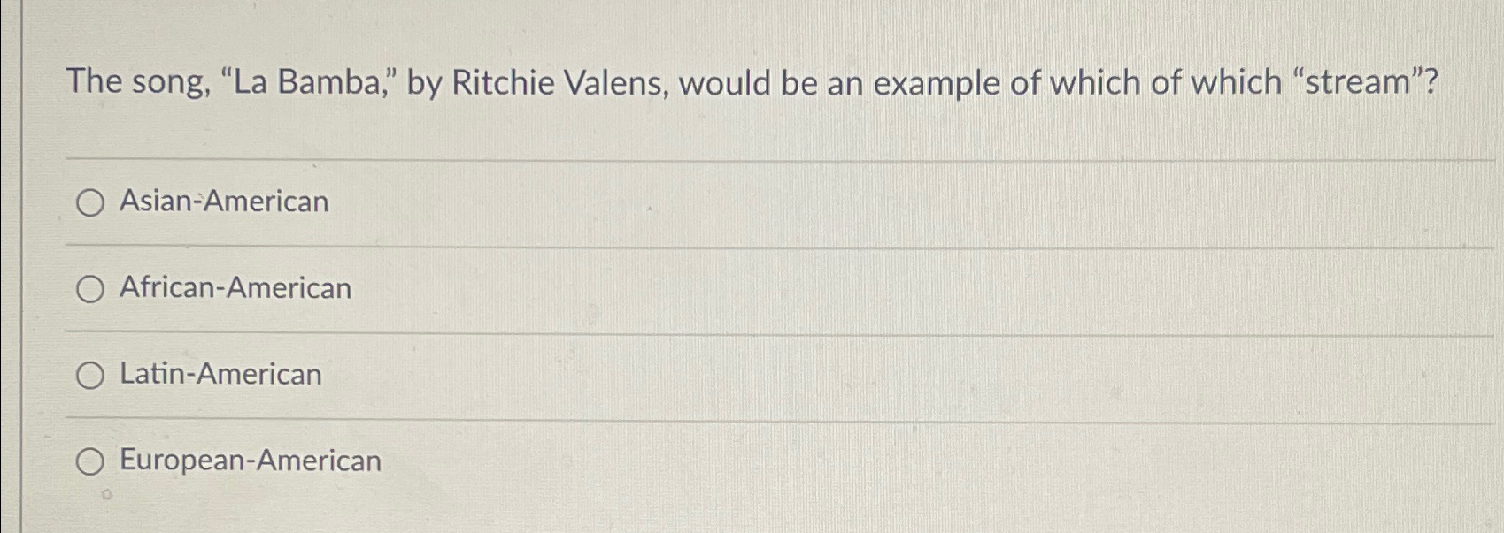 Solved The song quot La Bamba quot by Ritchie Valens would be an Chegg com