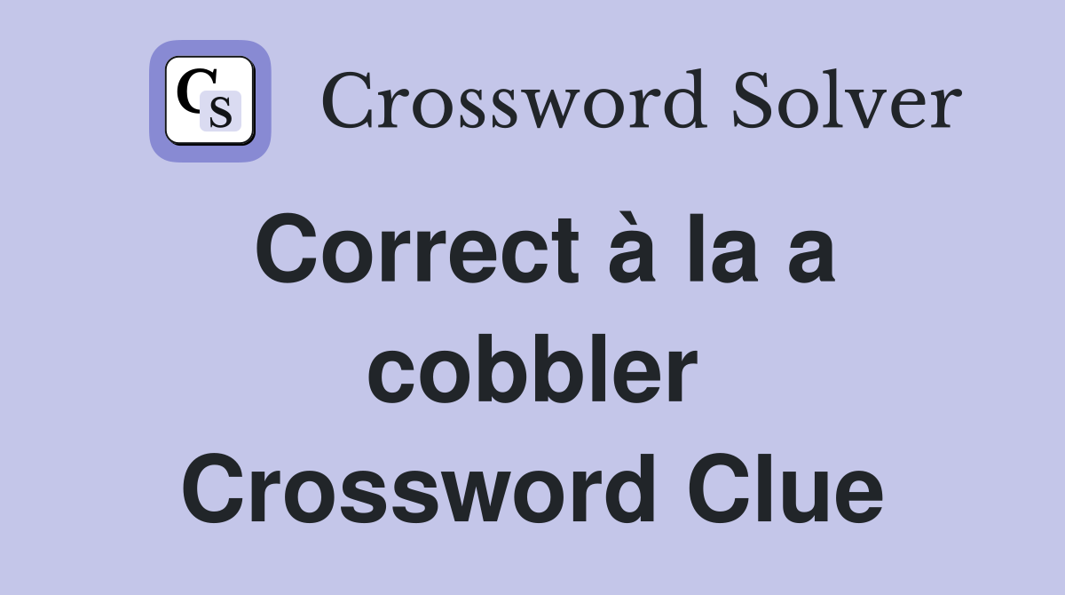 Correct à la a cobbler Crossword Clue Answers Crossword Solver