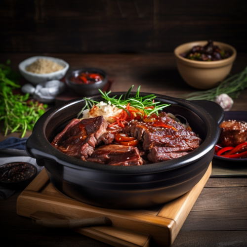 Galbi Jjim: Braised Beef Short Ribs with Vegetables Generative AI