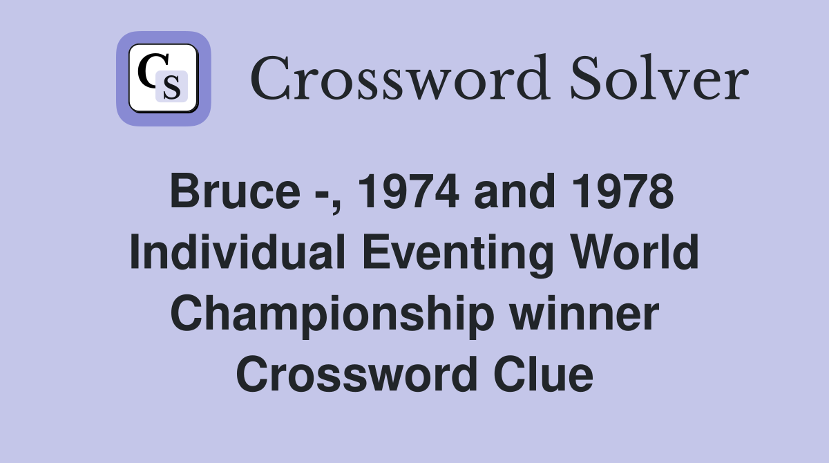 Bruce 1974 and 1978 Individual Eventing World Championship winner