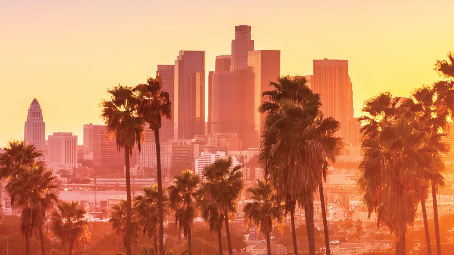 Download Stunning Sunset over the Los Angeles Skyline Wallpapers com