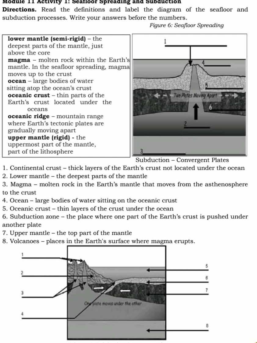 Solved: Module 11 Activity 1: Seafloor Spreading and Subduction