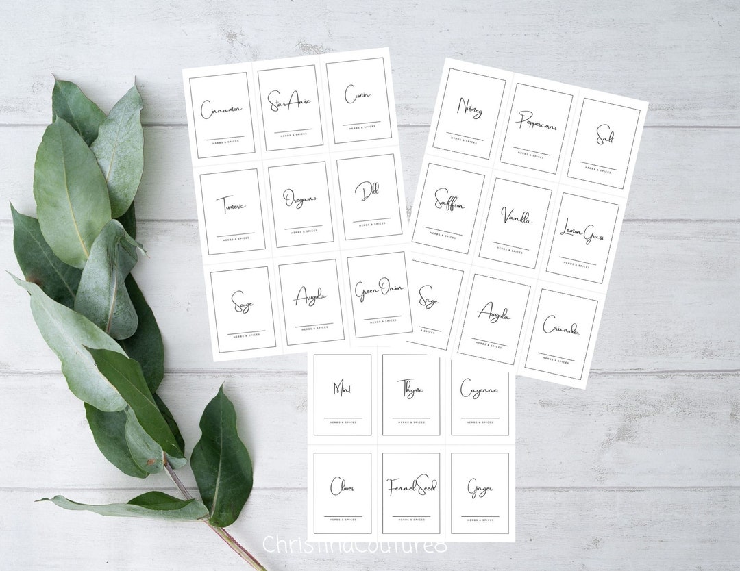 Printable Spice Labels Template Customisable Minimalist Illustration