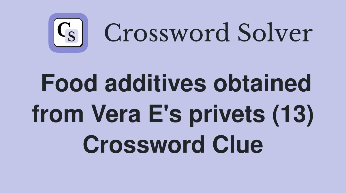 Food additives obtained from Vera E #39 s privets (13) Crossword Clue