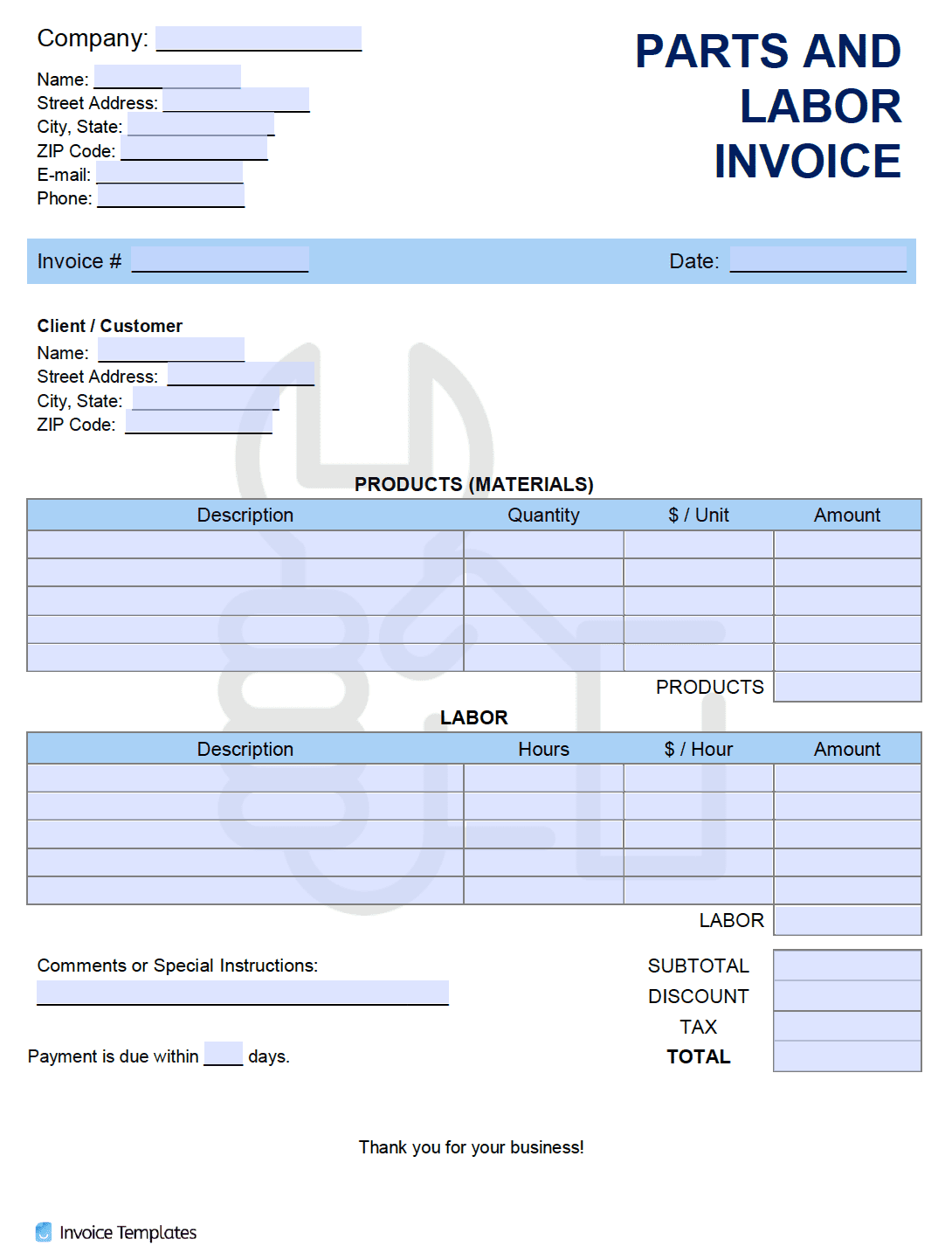 Parts and Labor Invoice Template 2024 Free in Word Excel