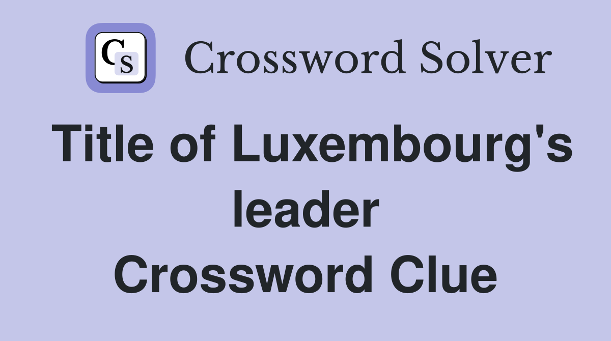 Title of Luxembourg s leader Crossword Clue Answers Crossword Solver