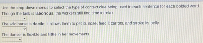 Solved: Use the drop down menus to select the type of context clue