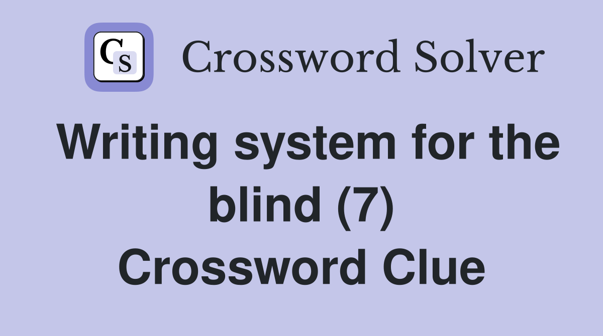 Writing system for the blind (7) Crossword Clue Answers Crossword
