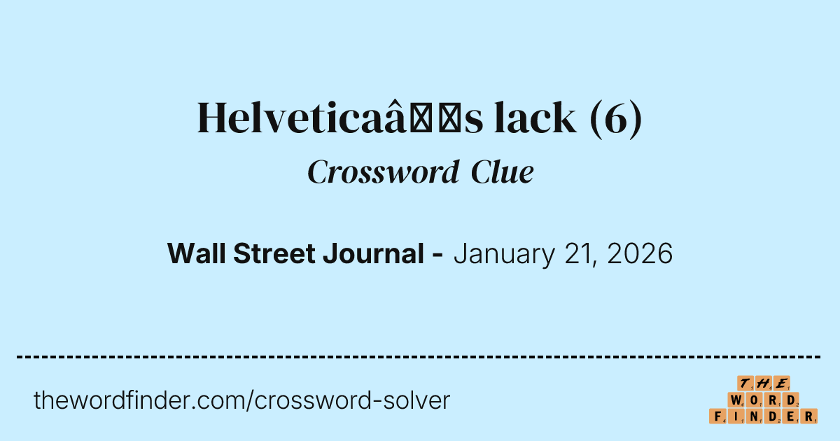 Helvetica s lack Crossword Clue WSJ Crossword