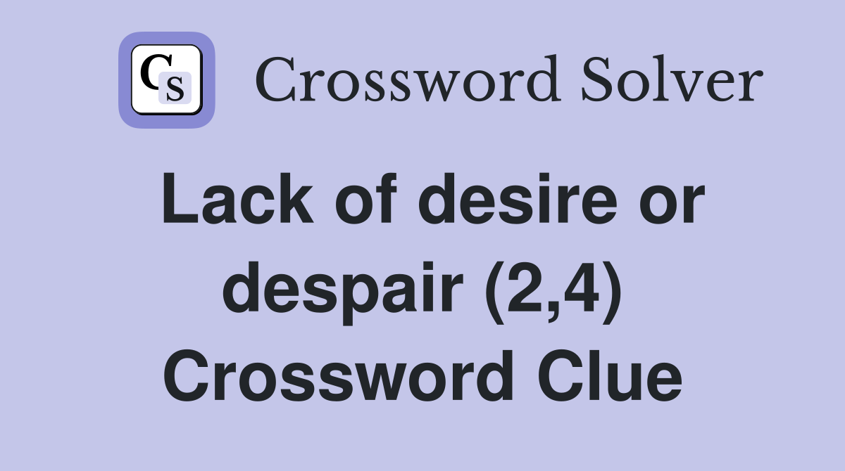 Lack of desire or despair (2 4) Crossword Clue Answers Crossword Solver