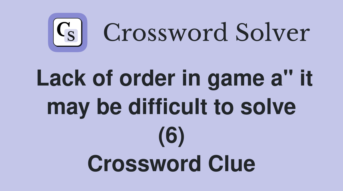 Lack of order in game a quot it may be difficult to solve (6) Crossword