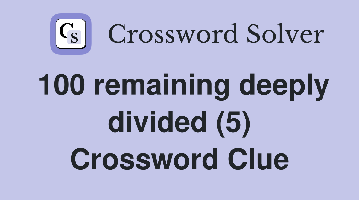 100 remaining deeply divided (5) Crossword Clue Answers Crossword