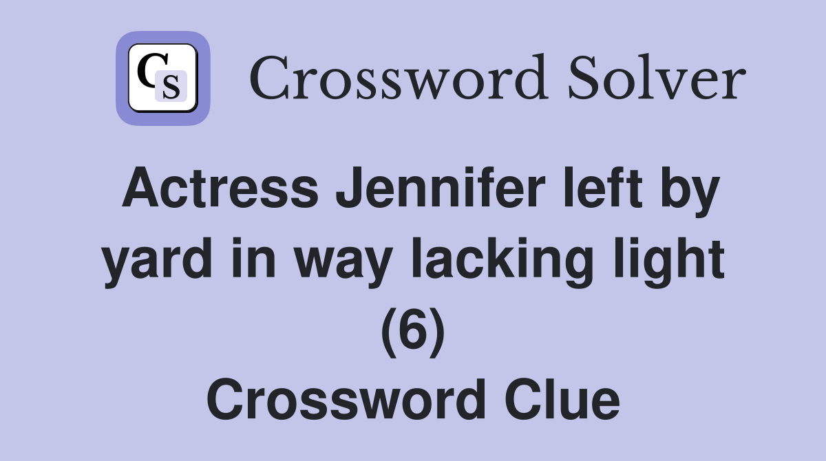 Actress Jennifer left by yard in way lacking light (6) Crossword Clue