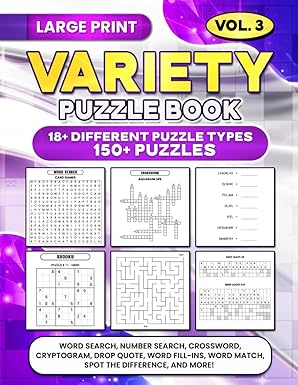 Variety Puzzle Book Vol 3: Large Print 18 Different Puzzle Types 150