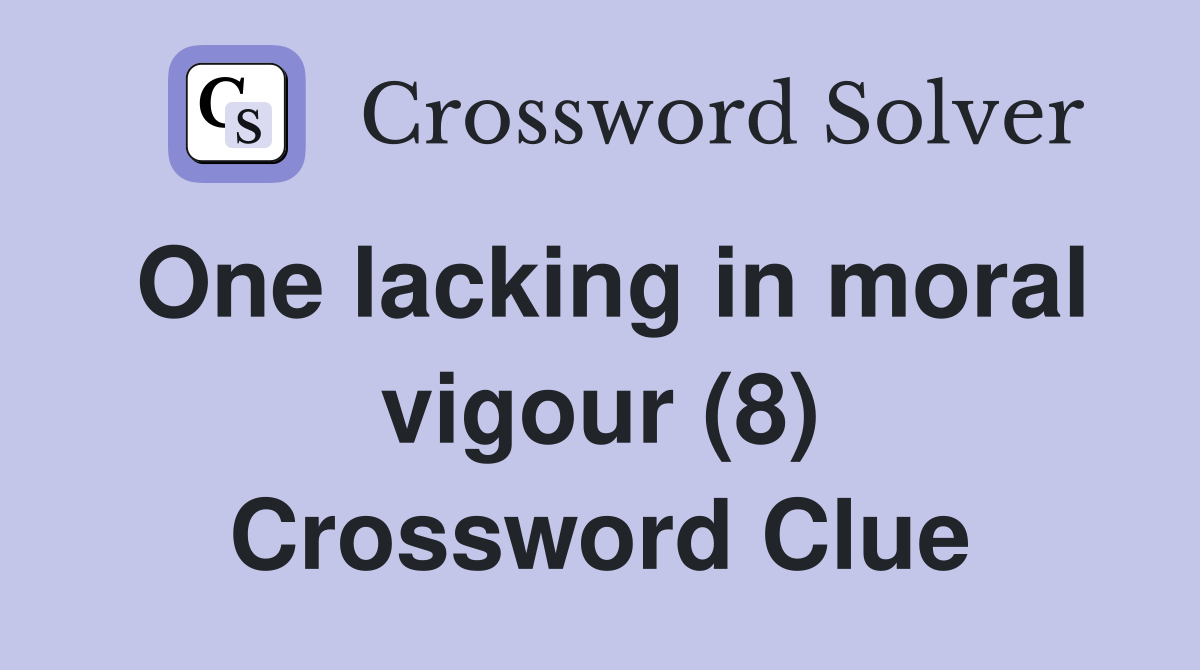 One lacking in moral vigour (8) Crossword Clue Answers Crossword Solver