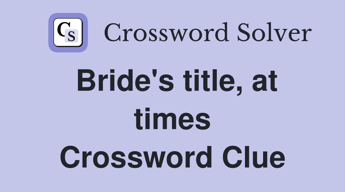 Bride #39 s title at times Crossword Clue Answers Crossword Solver