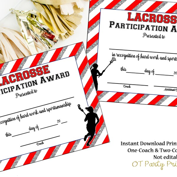 INSTANT DOWNLOAD Lacrosse Certificate LAX Award Lacrosse Printable