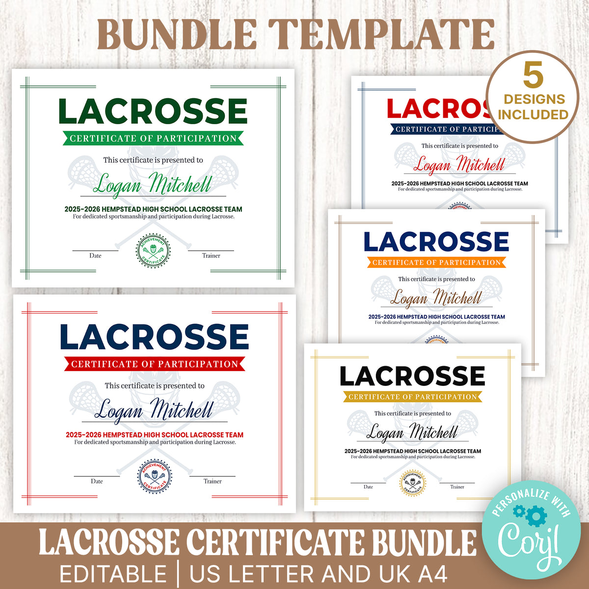 DIY Lacrosse Certificate Bundle Template Sports Awards Set Posh Park