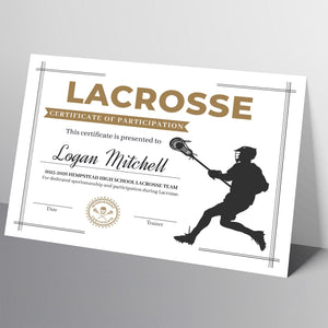 Lacrosse Award Certificates Ceremony Player Gift Sports Certificate