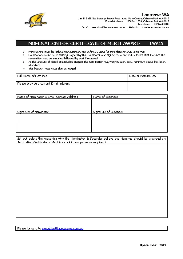 Nomination For Lacrosse Certificate Of Merit Award PDFSimpli