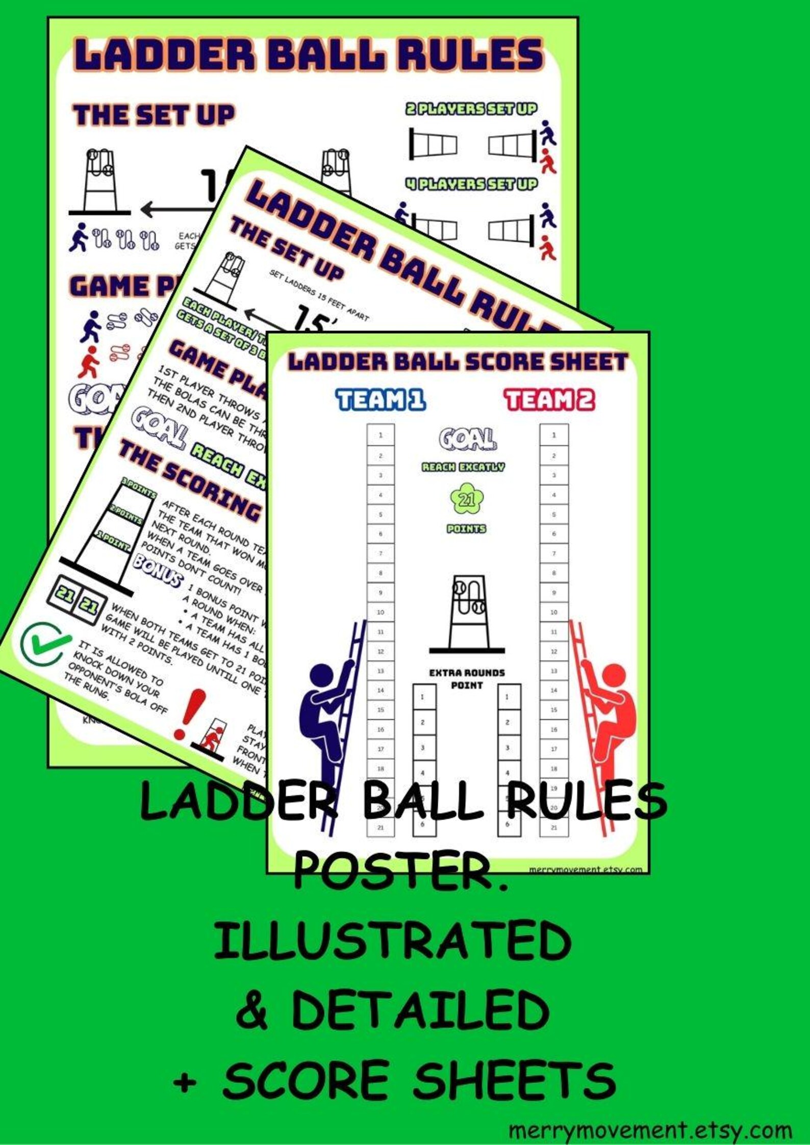 Ladder Ball Rules Poster Score Sheets: Yard Game Guide (printable PDF