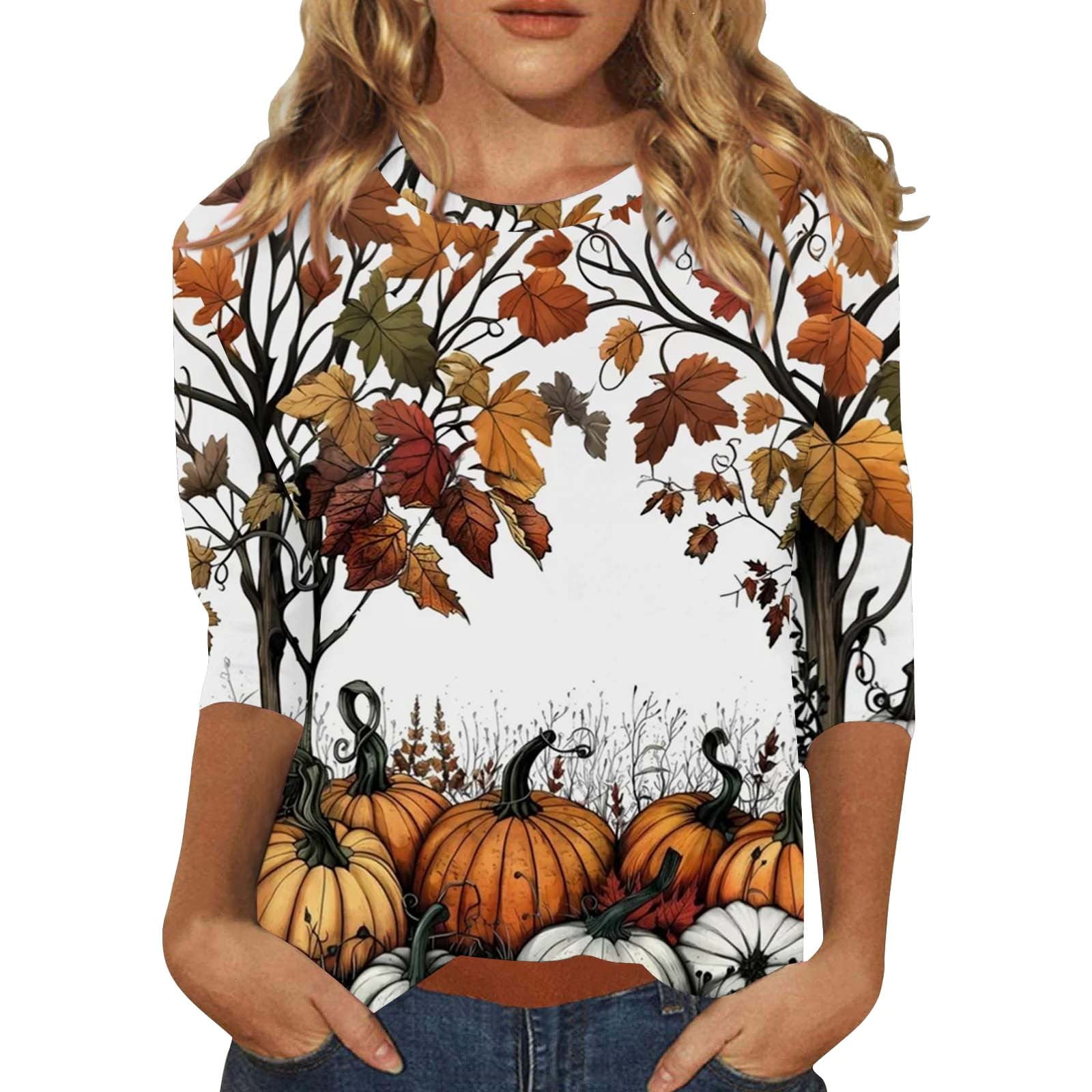 AJHSAKLt Ladies Tops And Blouses Women #39 s Round Neck Printed 3/4 Sleeves