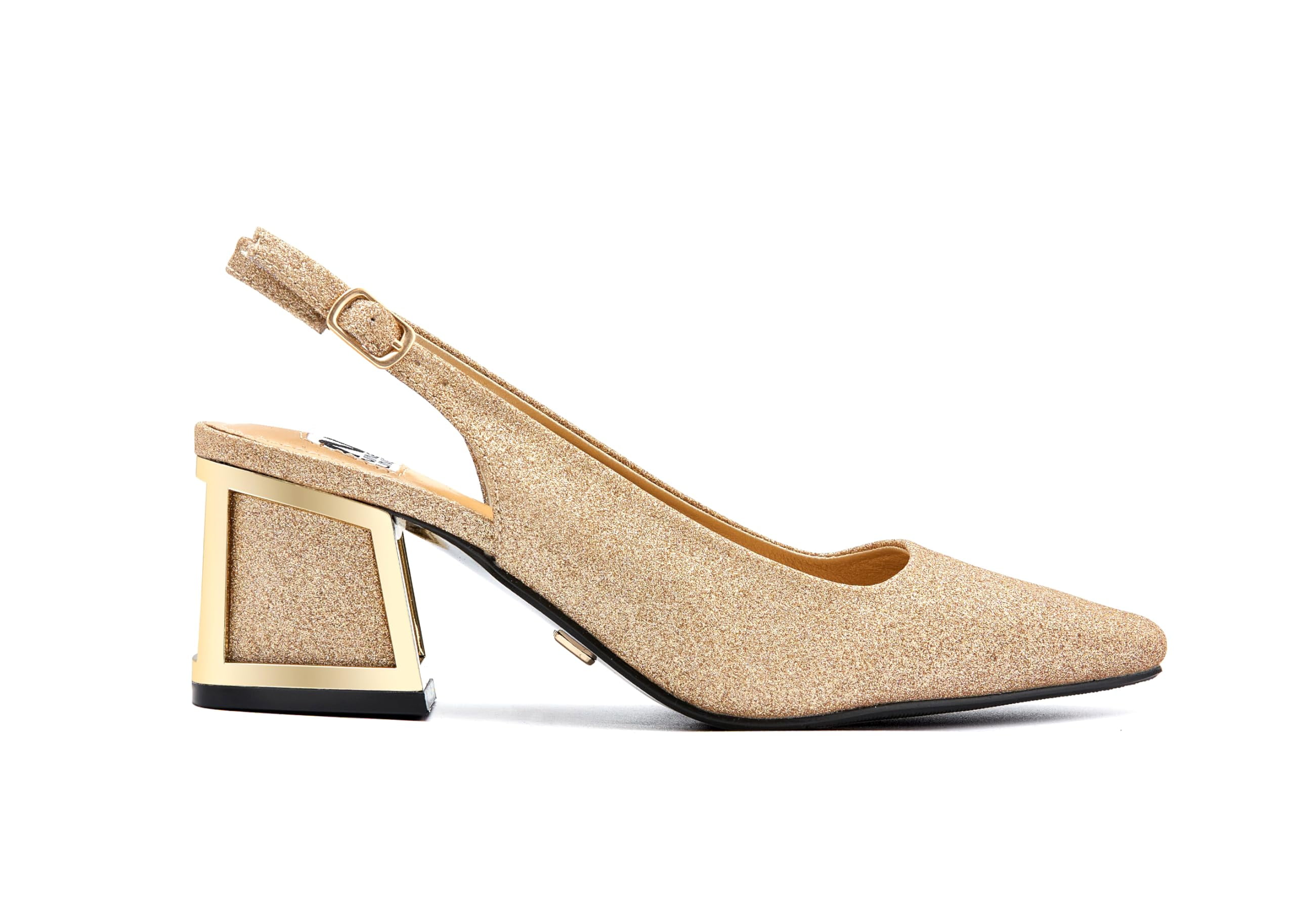 Lady Couture Boca Square Metal Heel Slingback Gold 12 Walmart com