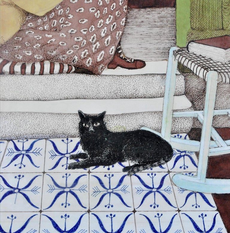 Joyce Hargreaves Les Mots Croises French Lady and Cat Interior