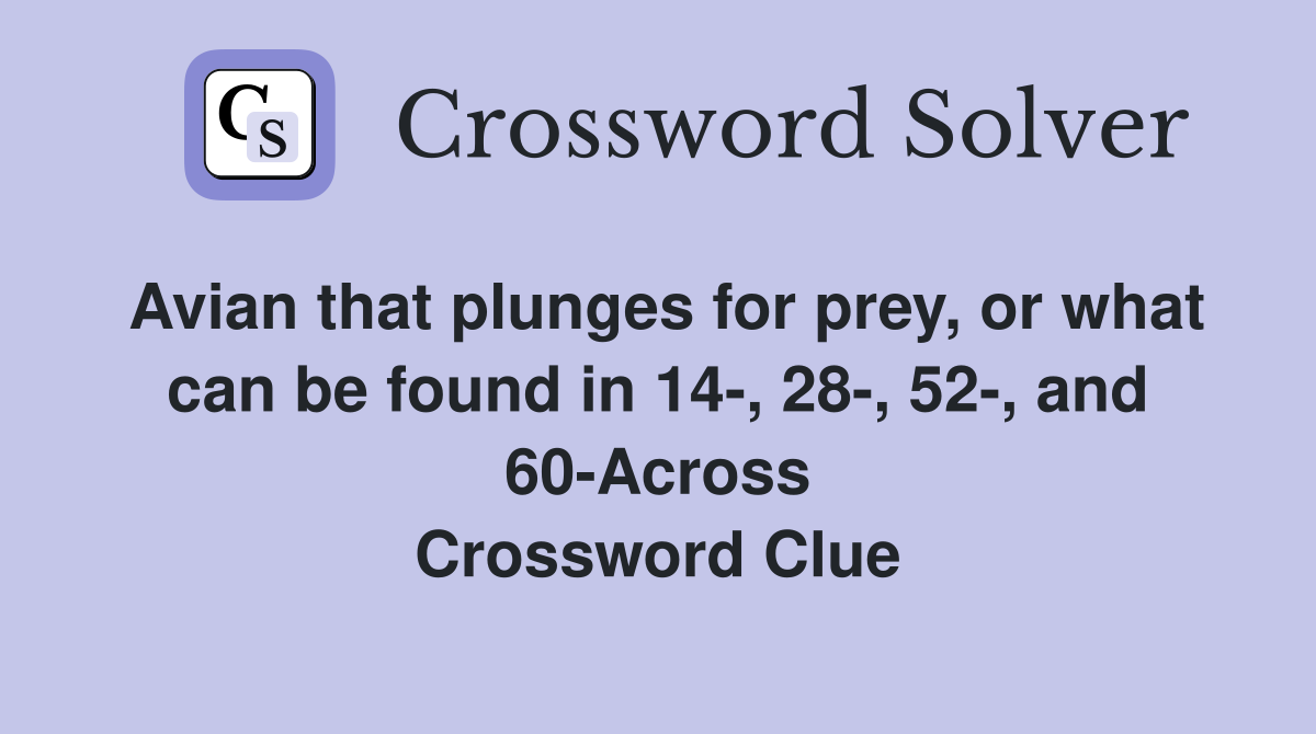 Avian that plunges for prey or what can be found in 14 28 52 and