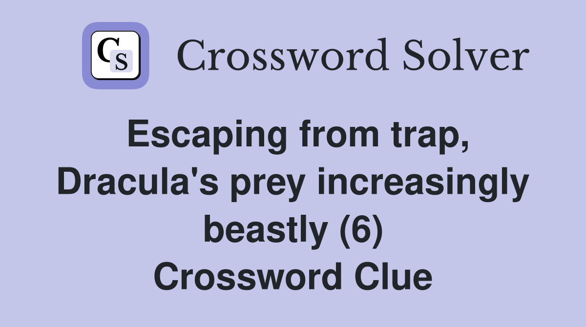 Escaping from trap Dracula s prey increasingly beastly (6) Crossword